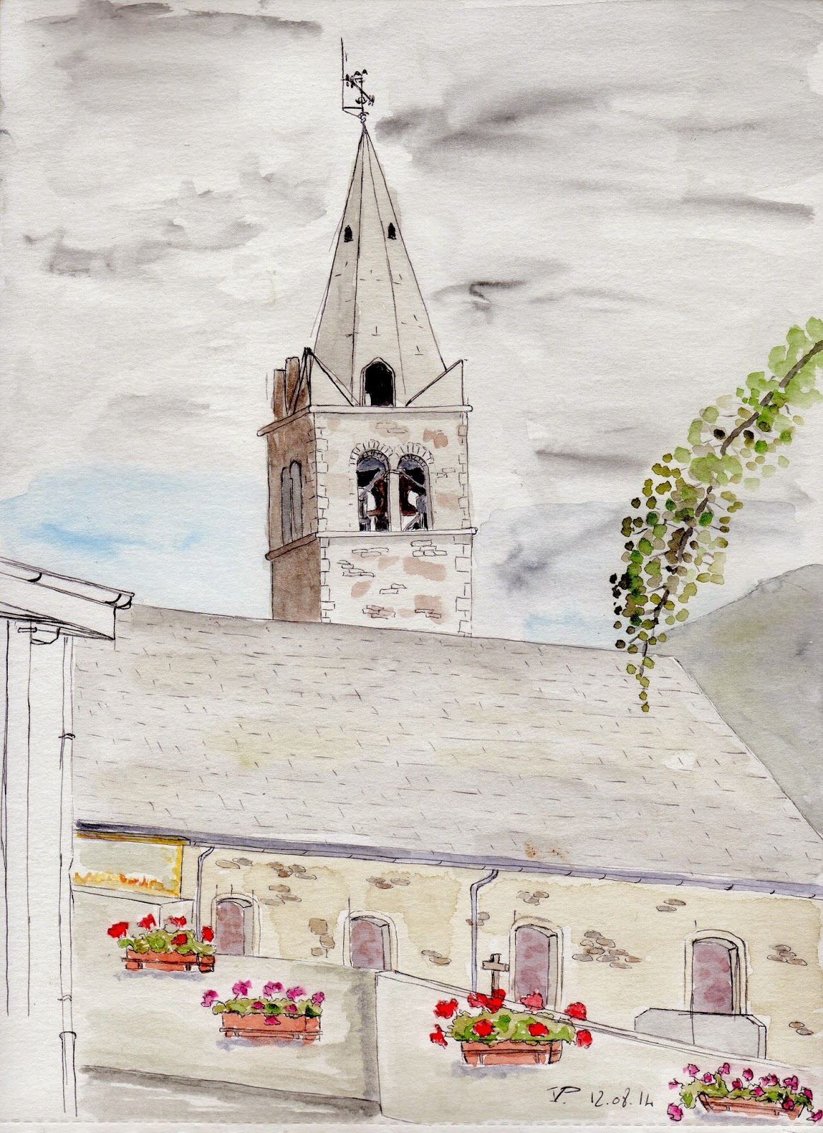 Voici le dessin du matin depuis le musée Chasal Lento qui n'ouvre que l'après midi. Pas de chance encore car il faisait bien frais et le temps était bien couvert.